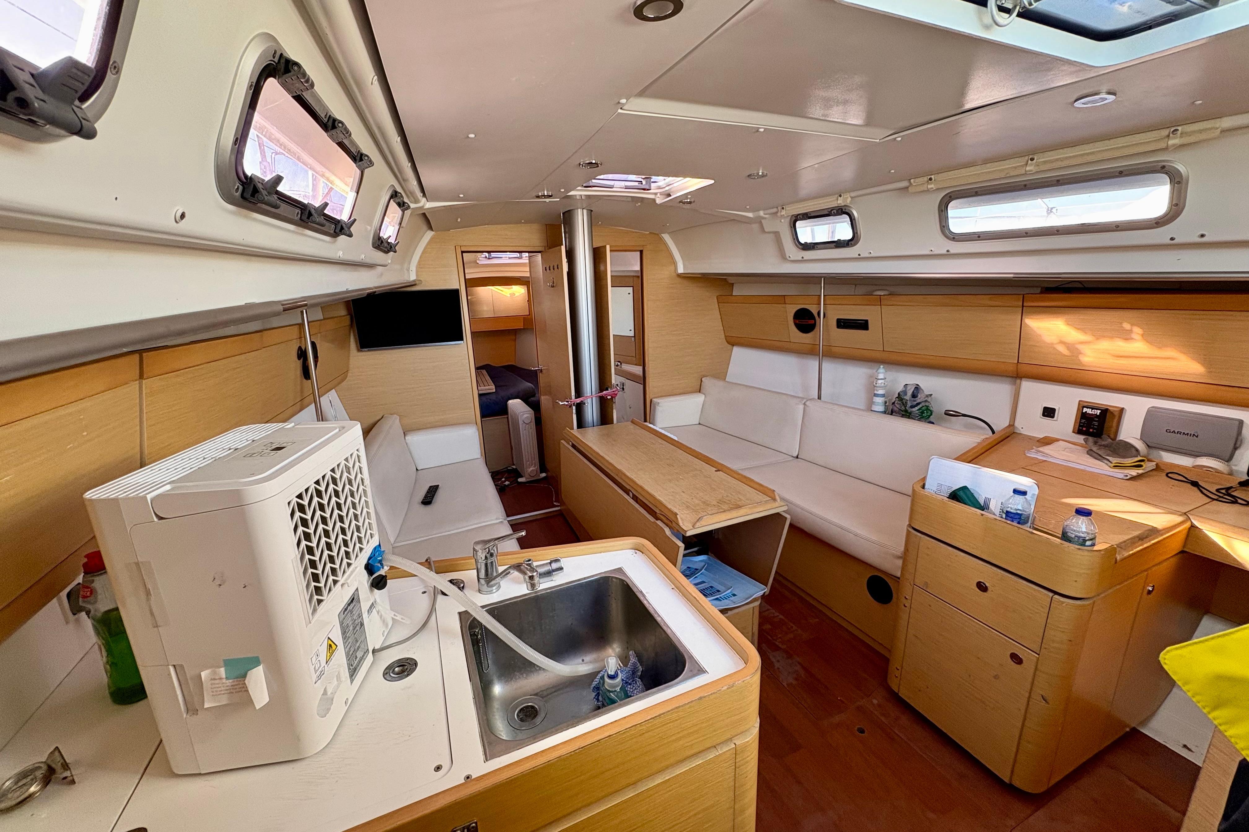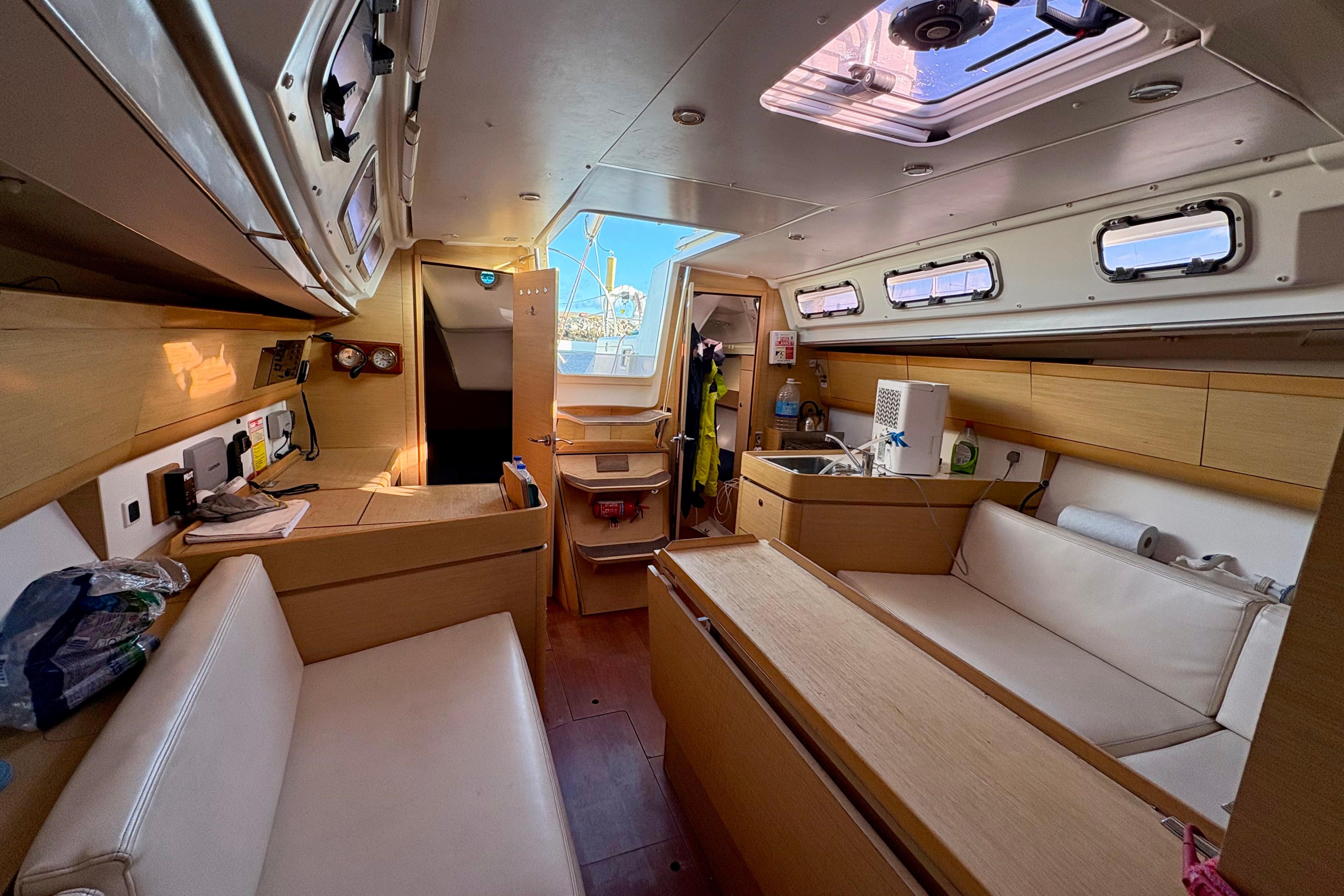 - Companionway in wood and stainless steel - Hung steps in moulded wood with non-slip surface