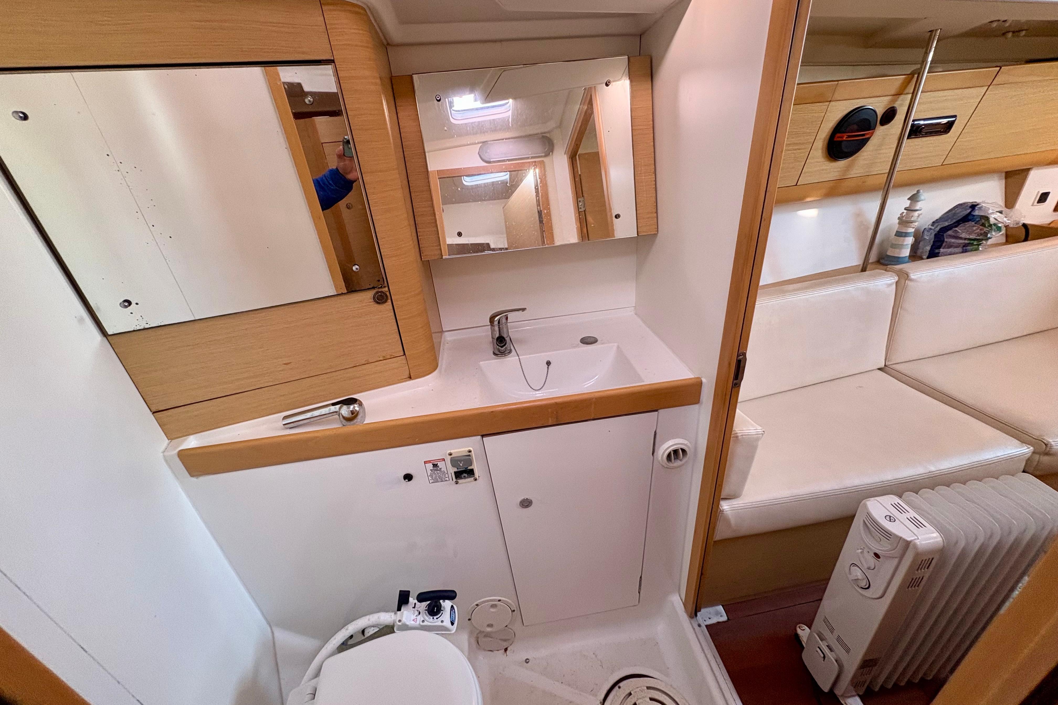 - 1 Engine access through companionway - 2 Access through aft cabins