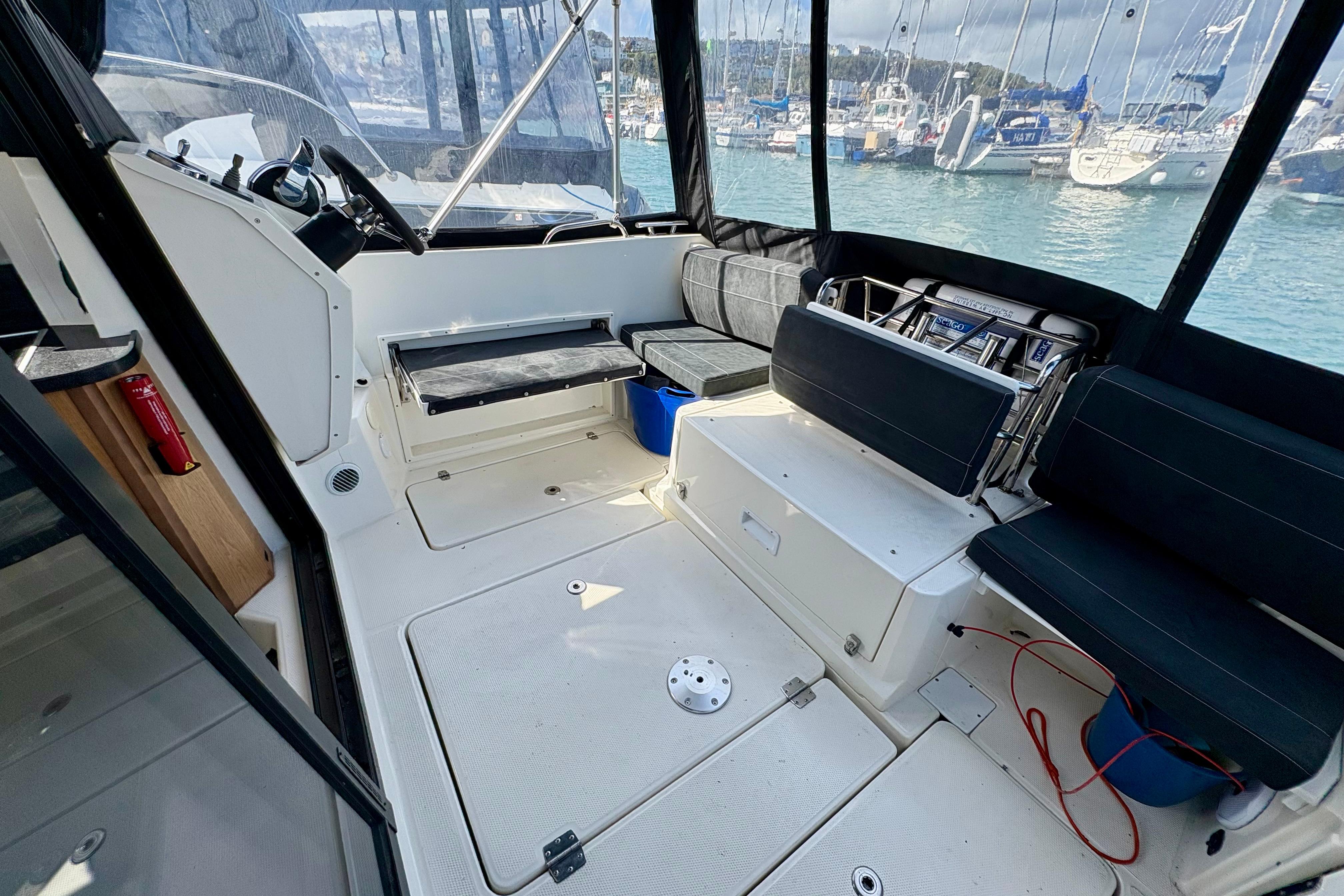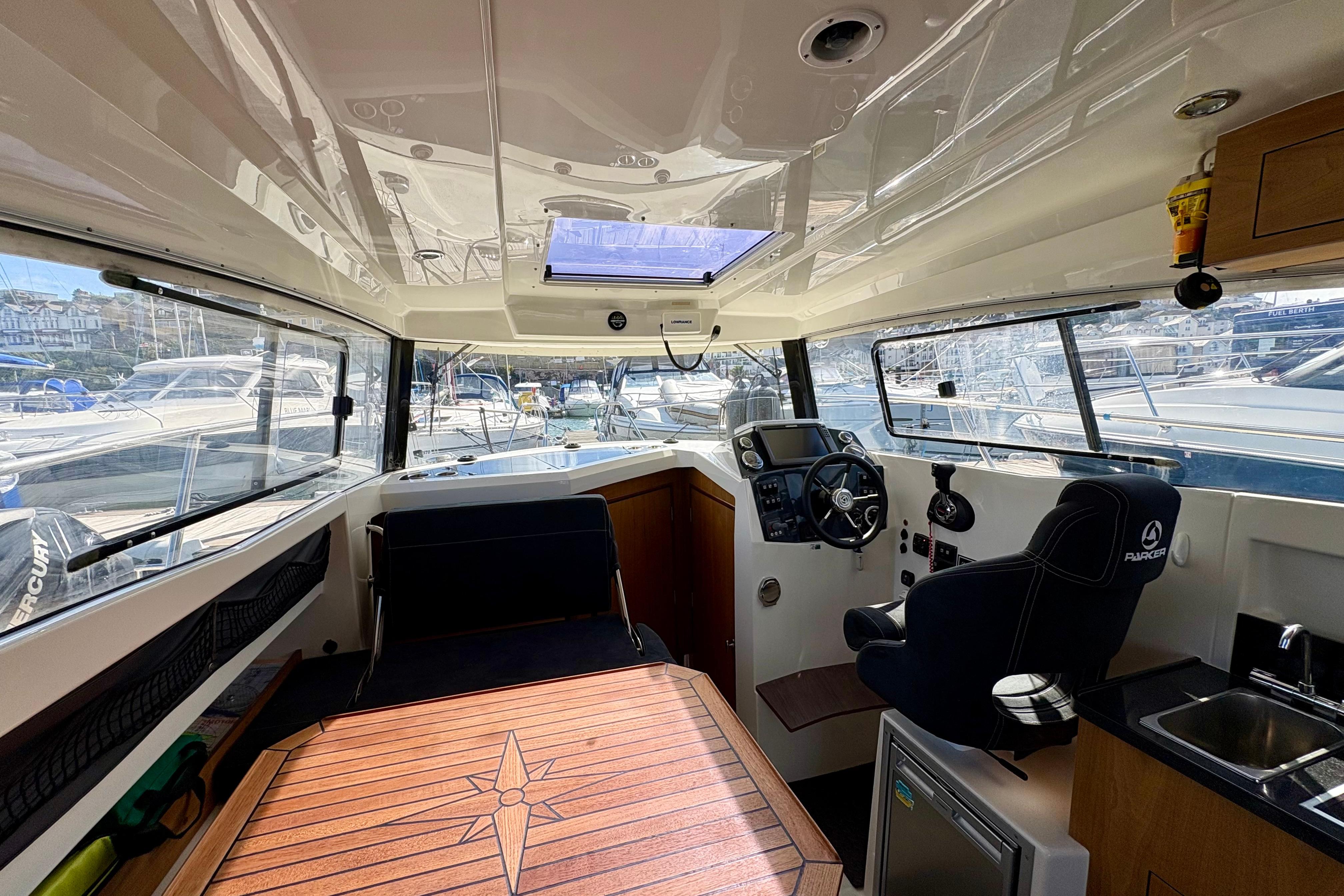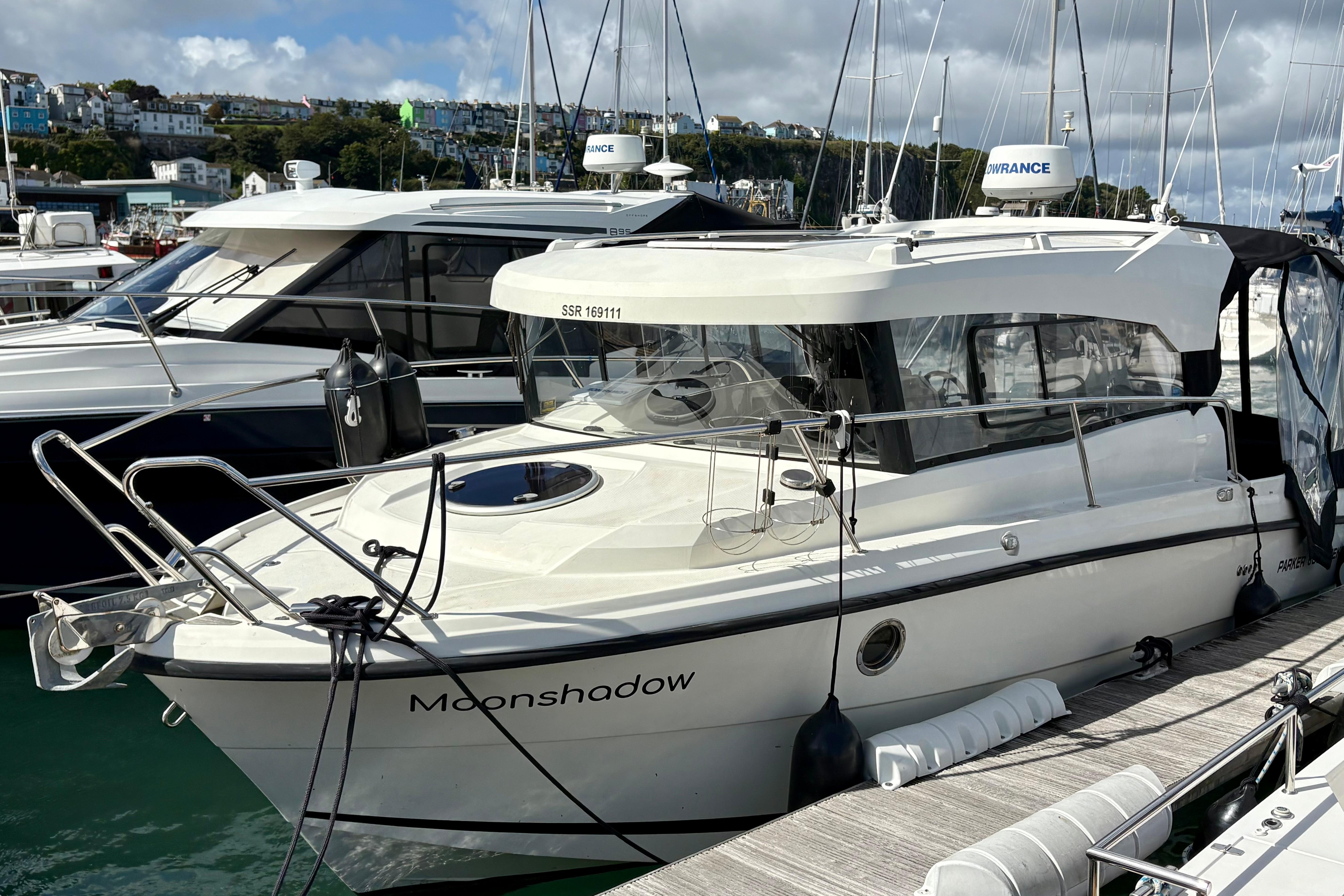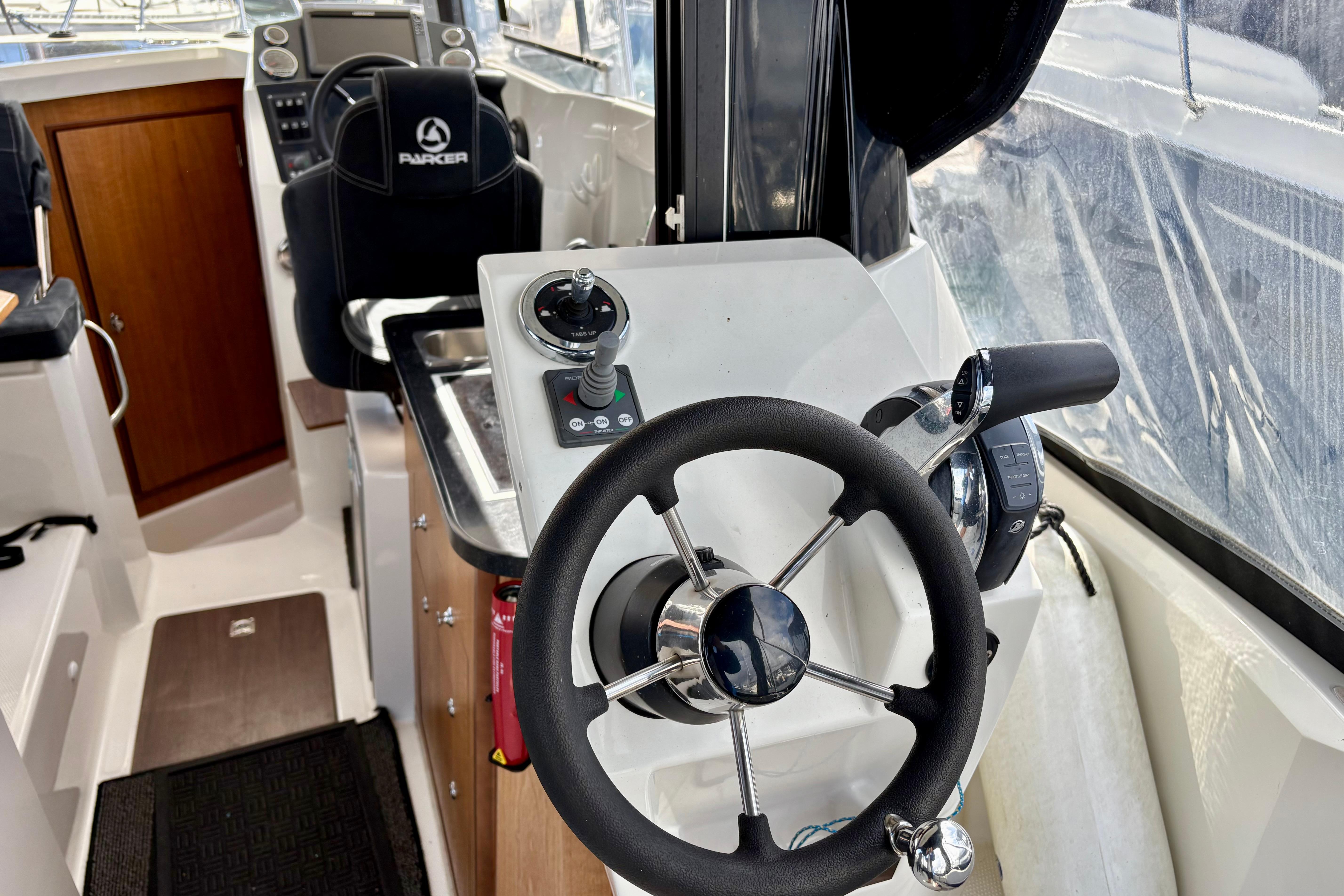 We have a 2017 Parker Poland 800 Weekend For Sale here in Brixham Marina, a stunning all round boat that combines elegance with functionality. With an overall length of 8.5 meters, this vessel offers a robust and reliable performance on the water. Powered by a Mercury Diesel Bravo III inboard engine, it delivers an impressive 220 horsepower, allowing for a cruising speed of 20 knots and a maximum hull speed of 28 knots, perfect for exhilarating adventures. The boat features two comfortable cabins and one head, providing ample space for relaxation and convenience. An electric windlass enhances the boating experience, making anchoring effortless. Whether you're planning a weekend getaway or a day on the water, the Parker 800 Weekend is designed to meet your needs with style and efficiency. Enjoy the perfect blend of comfort and performance with this exceptional vessel.