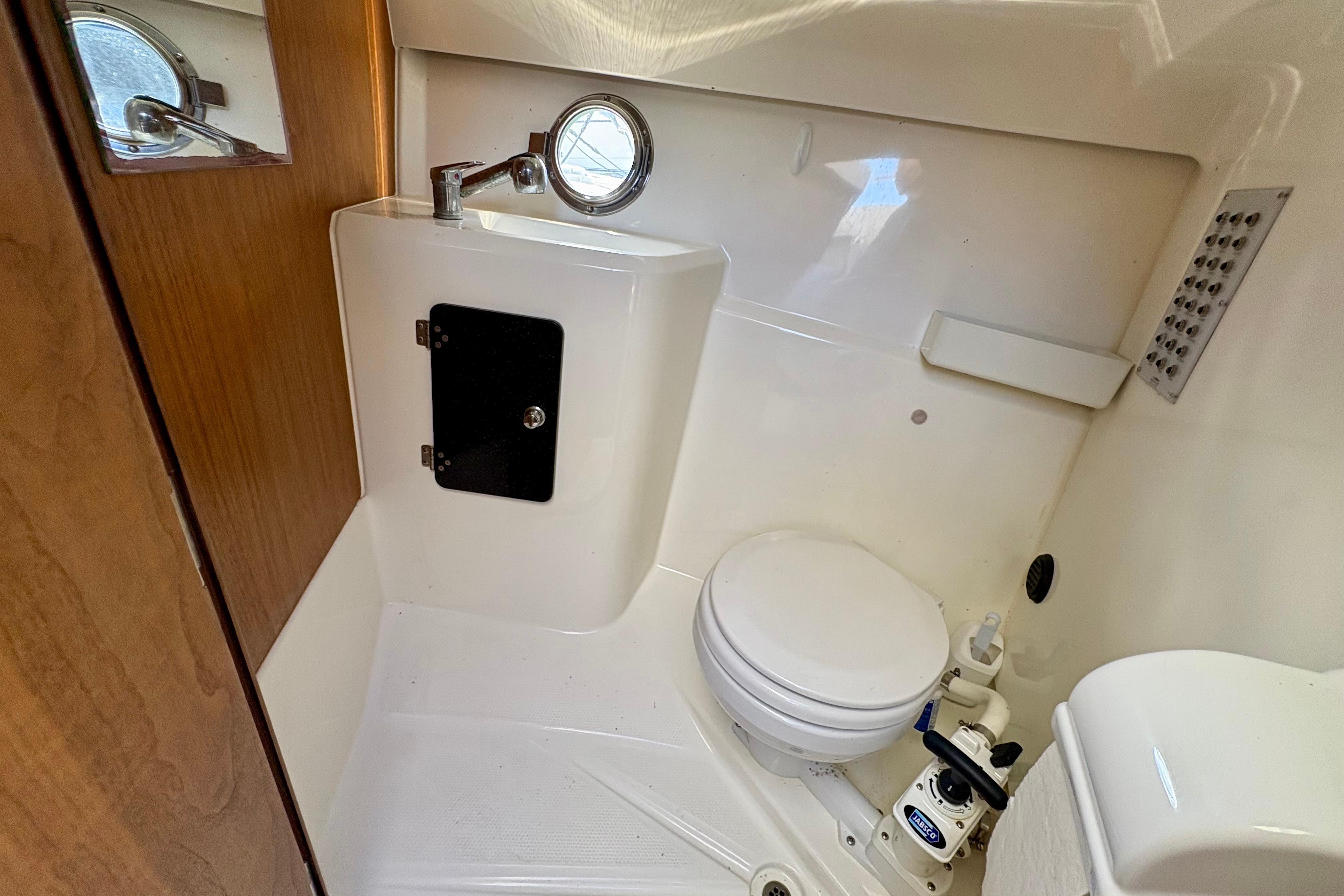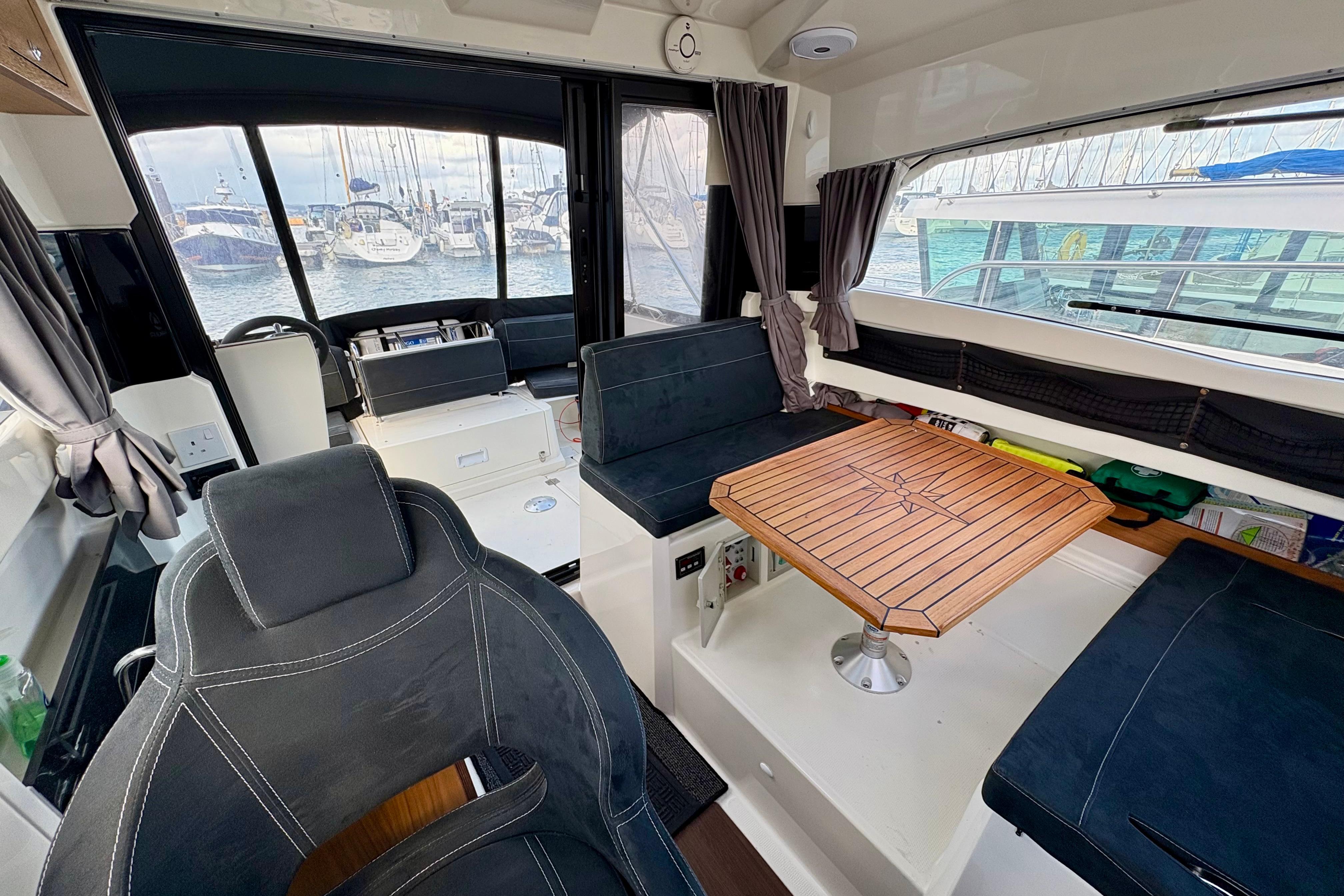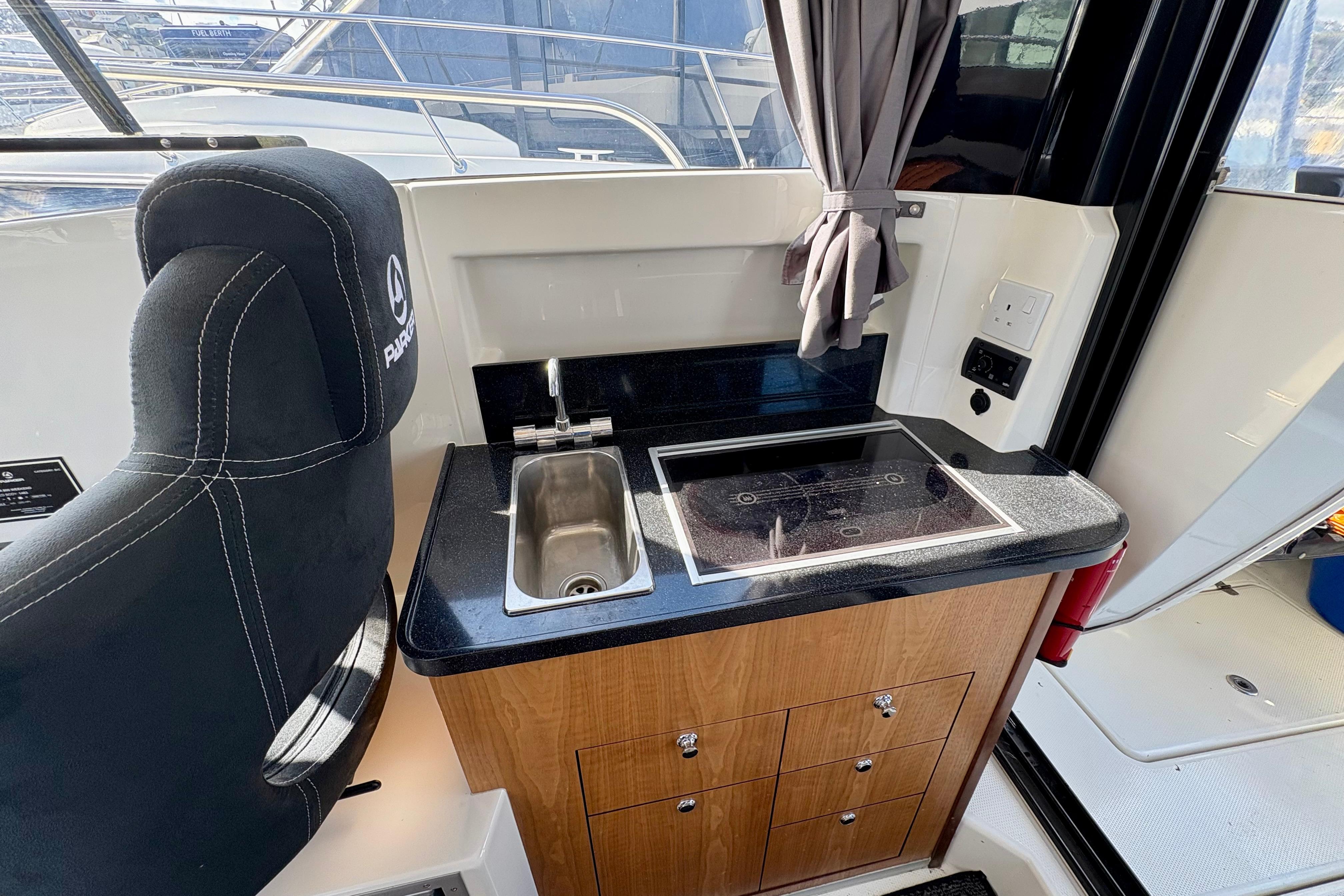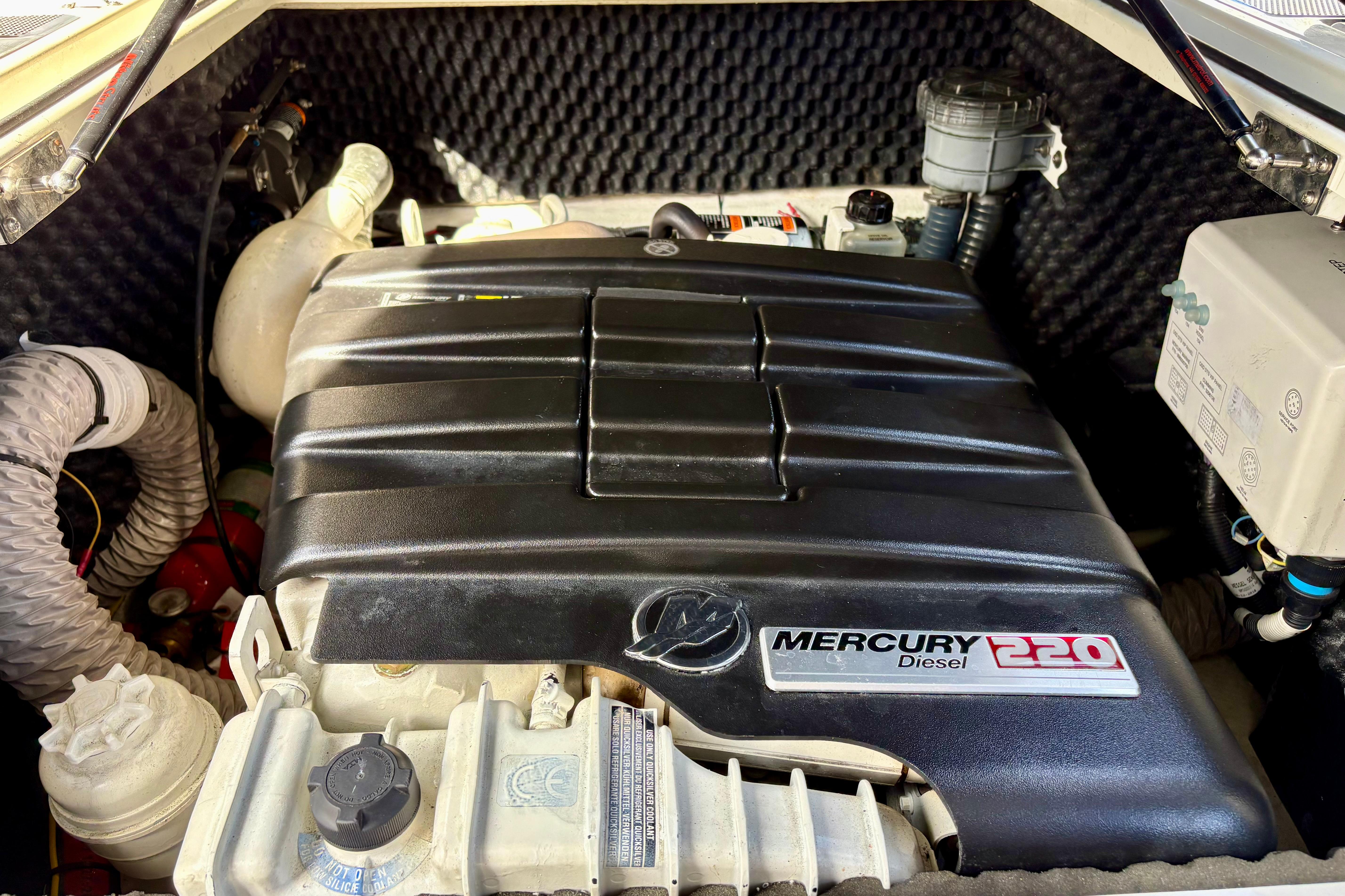 Mercury Diesel 220hp Bravo III with less than 250hrs | Hydraulic Steering | Lowrance HDS12 Chartplotter | Lowrance 3G Radar | Lowrance DSC VHF Radio | Fusion Music System | Bow Thruster | Hot Water Tank | Shore Power | Anchor Winch | Heating| Trim Tabs| Screen Wash | Port & Starboard Windscreen Wipers | Outside Helm with additional Bow Thruster & Trim Tab Control | Coppercoat Hull | Canopy | Upgraded Anthracite Upholstery| Triple Batteries | Sea Toilet with Holding Tank & Pump Out | Sliding Roof Hatch | Foredeck Hatch | Fresh Water System | Aft Deck Cushions | Over Cupboard Pantry | Davits | Life Raft