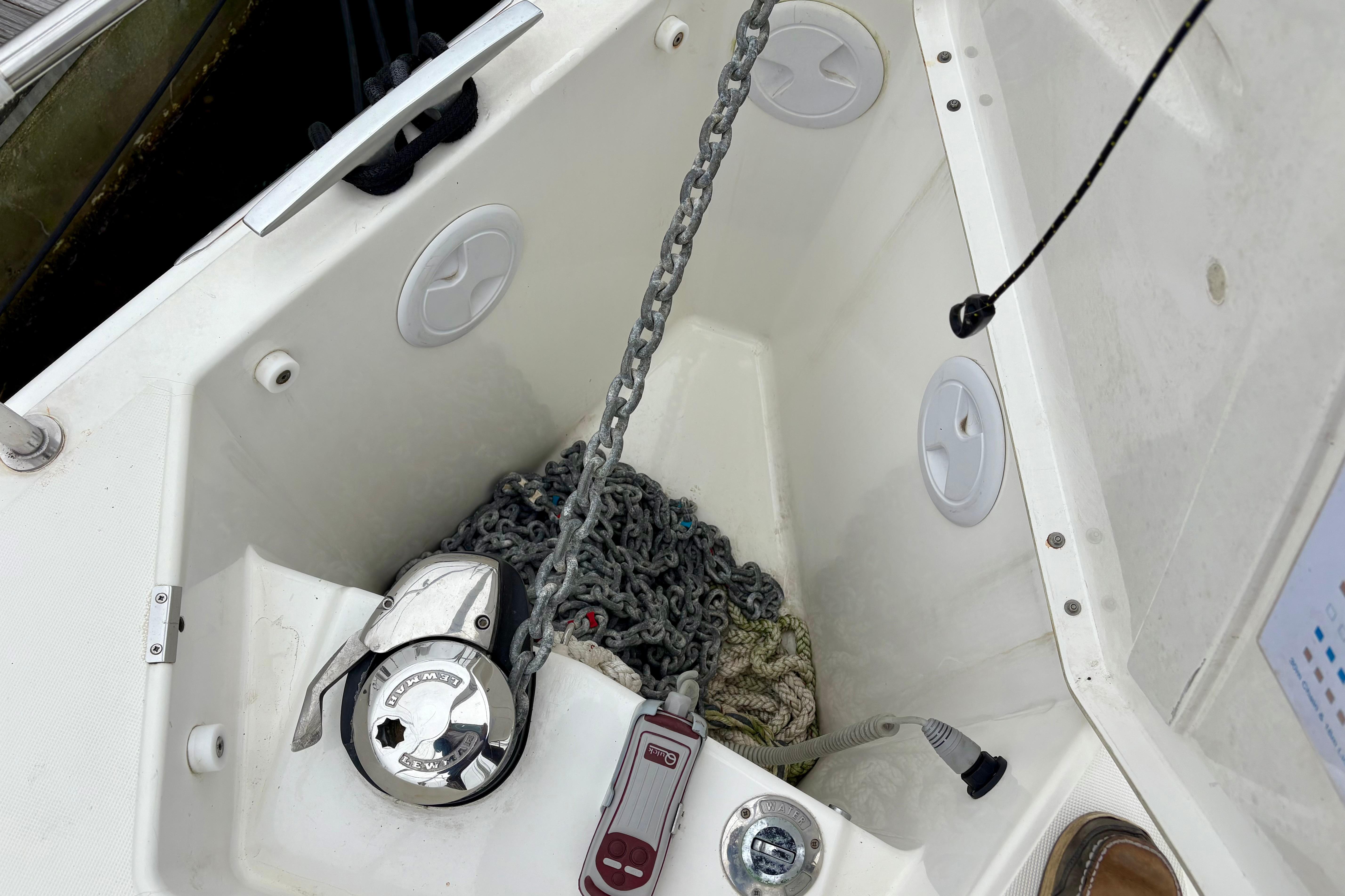 - Anchor locker: Self-draining with built-in windlass support and anchor chain eyebolt, lockable hatch cover.