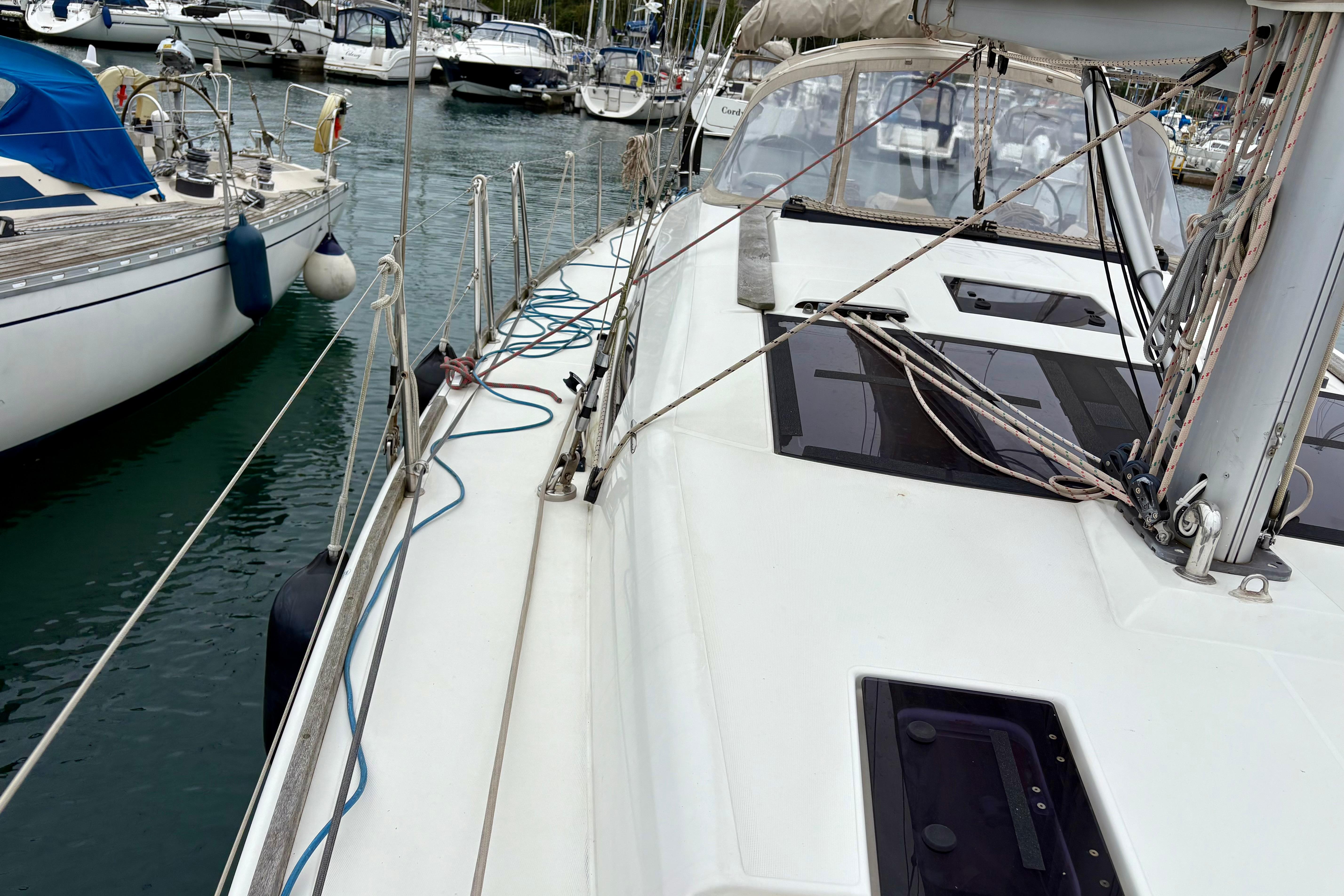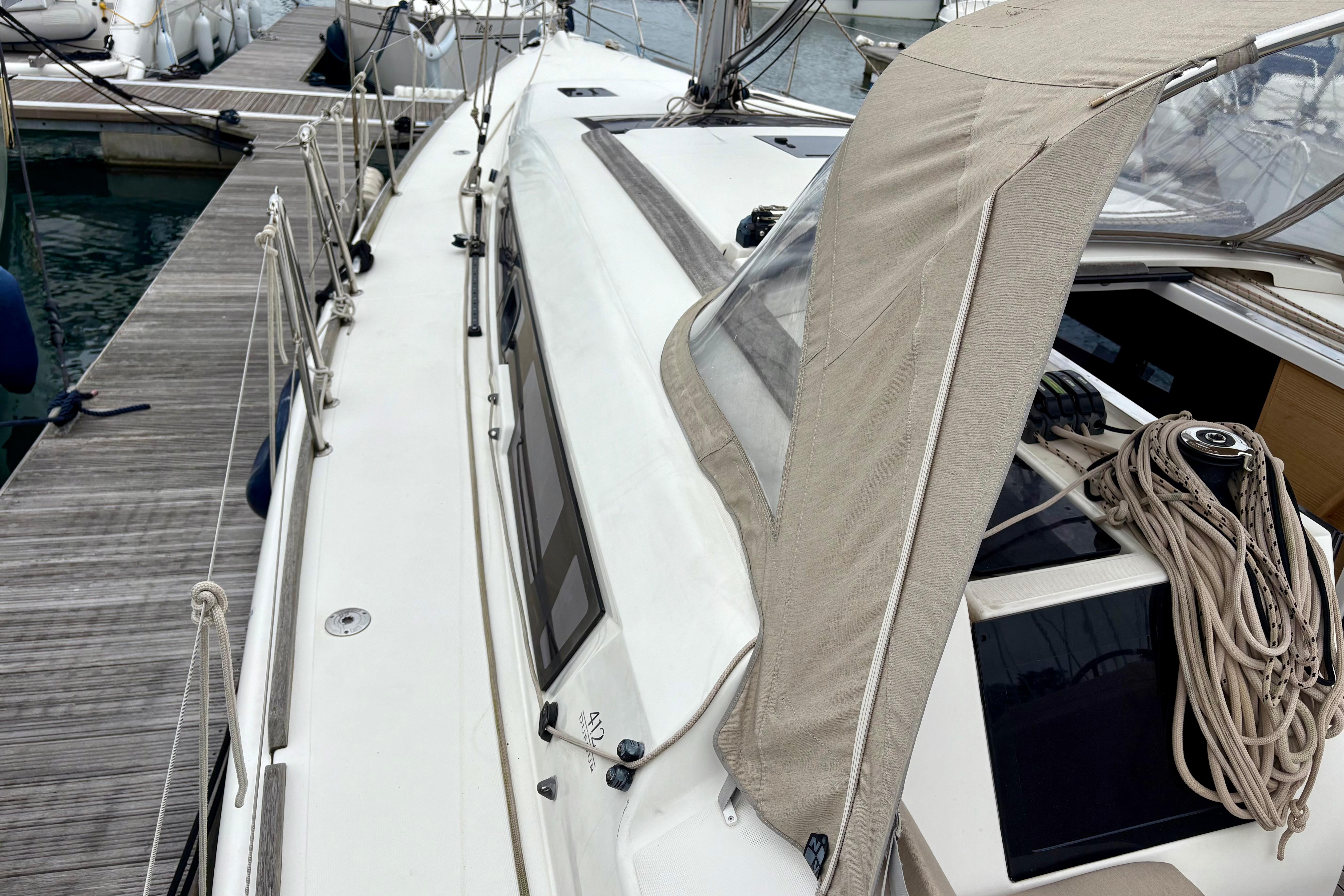 - Running rigging: Running rigging in pre-stretched textile including: main and genoa halyards, boom topping lift, main and genoa sheets, 2 continuous reef lines, leech tensioner, 2 mainsheet car adjustments,furling line, downhaul tackle.