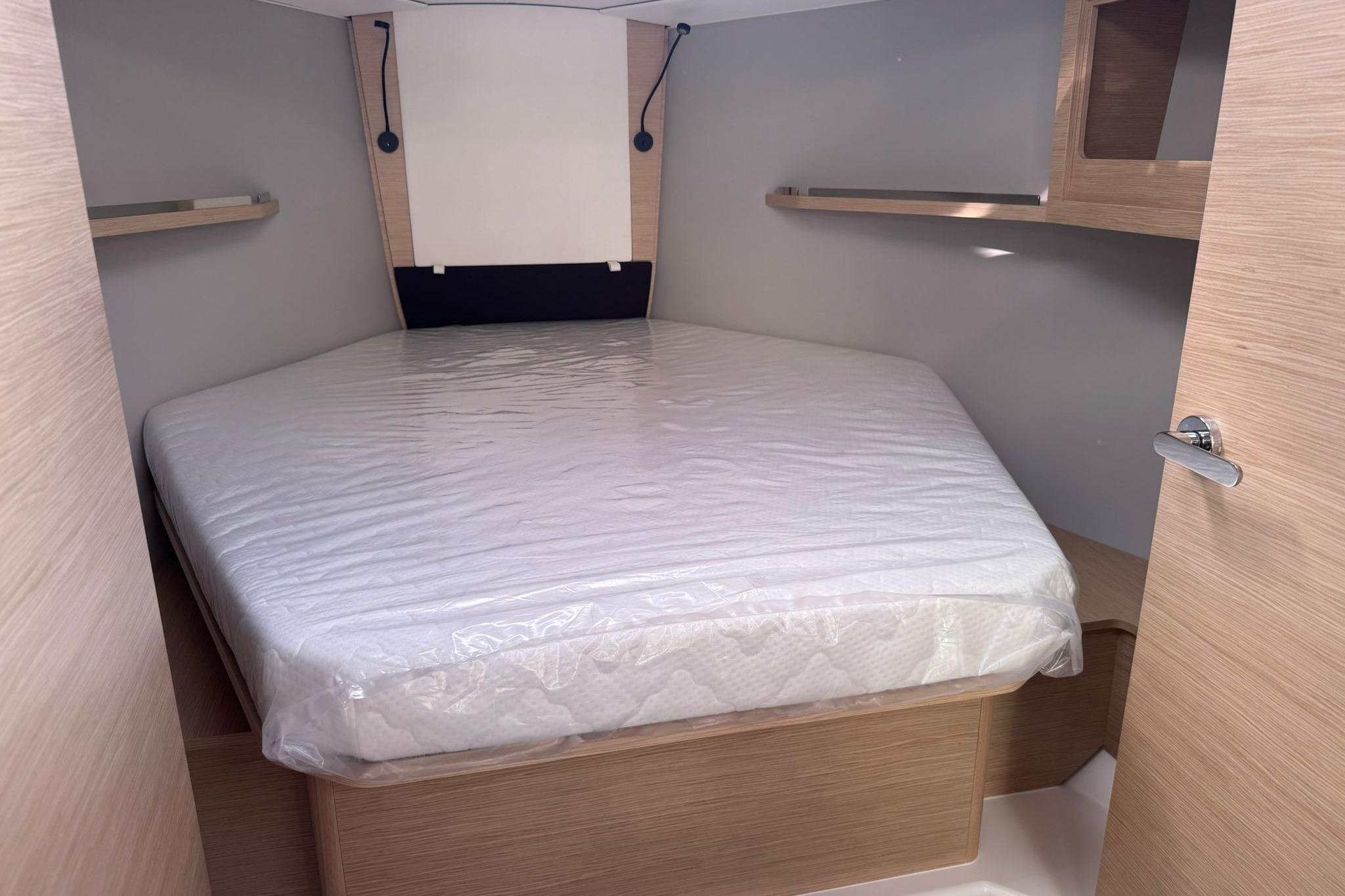 Whether the three-cabin or two-cabin version with its large bathroom, the interior of this model is bathed in light thanks to the large central hull windows.